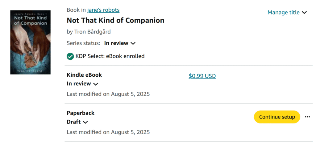 The manuscript has been formatted, and the cover resized and made into a PDF. A bunch of questions and options are set, and now it’s just a bit of waiting and last checks before publication. First as a paperback and then soon after as a digital version.